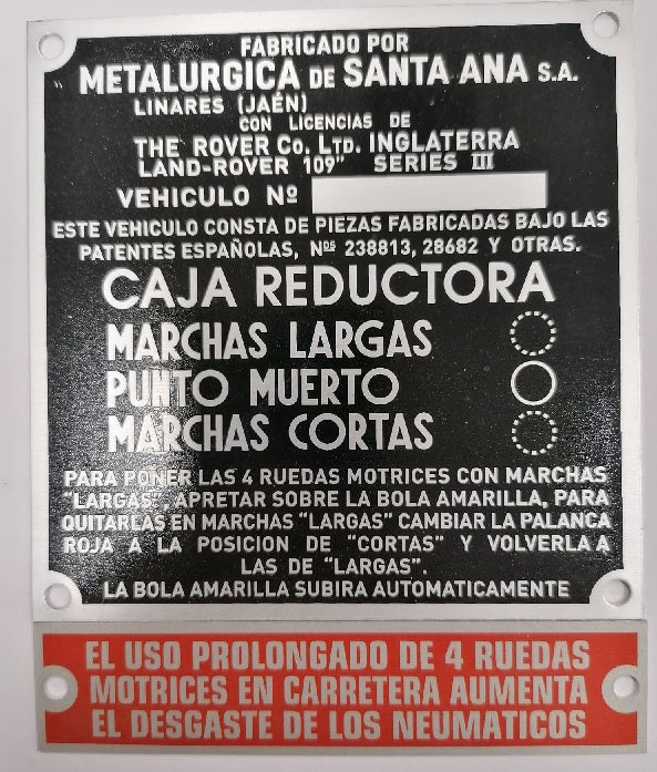 IIdentification Plate - Emblem - Anagram - Land Rover Santana