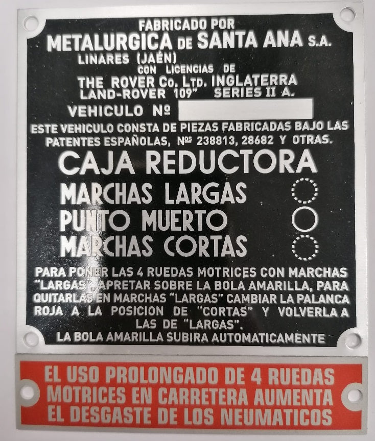 IIdentification Plate - Emblem - Anagram - Land Rover Santana