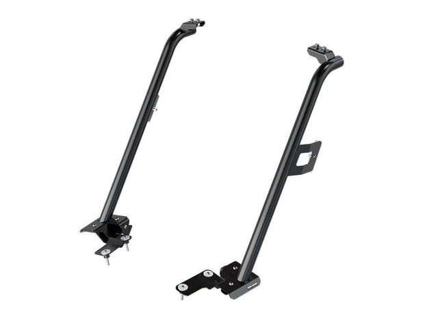 Mounts to the Jeep Wrangler JL 4xe by fitting into existing mounting points. Secures to the front of your Front Runner full-sized Jeep Wrangler JL 4xe Roof Rack. Comes in a set of (2) two, left and right side. This bracket is compatible with most raised air intakes/snorkels*. *Suitable for most Raised Air Intakes / Snorkels fitments. Confirm fitment with Air Intake / Snorkel fitment guide. Note: This is not suitable for the Mojave Edition of the Jeep Gladiator.