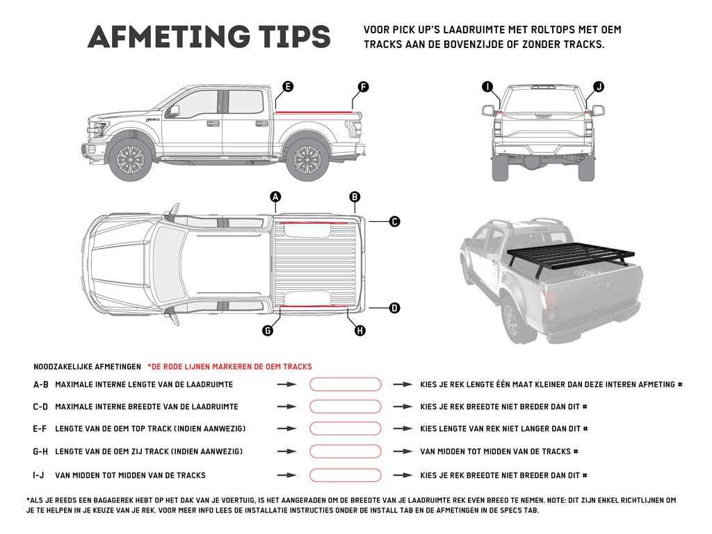 This kit creates a full size rack that sits above your Pickup truck bed. This Slimline II cargo carrying rack kit contains the Slimline II tray (1255mm x 1358mm), 2 Tracks, and 4 Pickup Truck Bed Universal Legs that fit into the Tracks.Drilling is required for installation. All Front Runner Rack Kits contain installation instructions as well as all the components needed to mount the Slimline II Tray to your vehicle.All Front Runner Racks are backed by a Limited Lifetime Warranty*For further information on installation, please see the fitment instructions in the INSTALL tab. * Note: A maximum driving speed of 130km/80mi per hour should be adhered to, when equipped with a Front Runner Roof Rack or Load Bar kit.