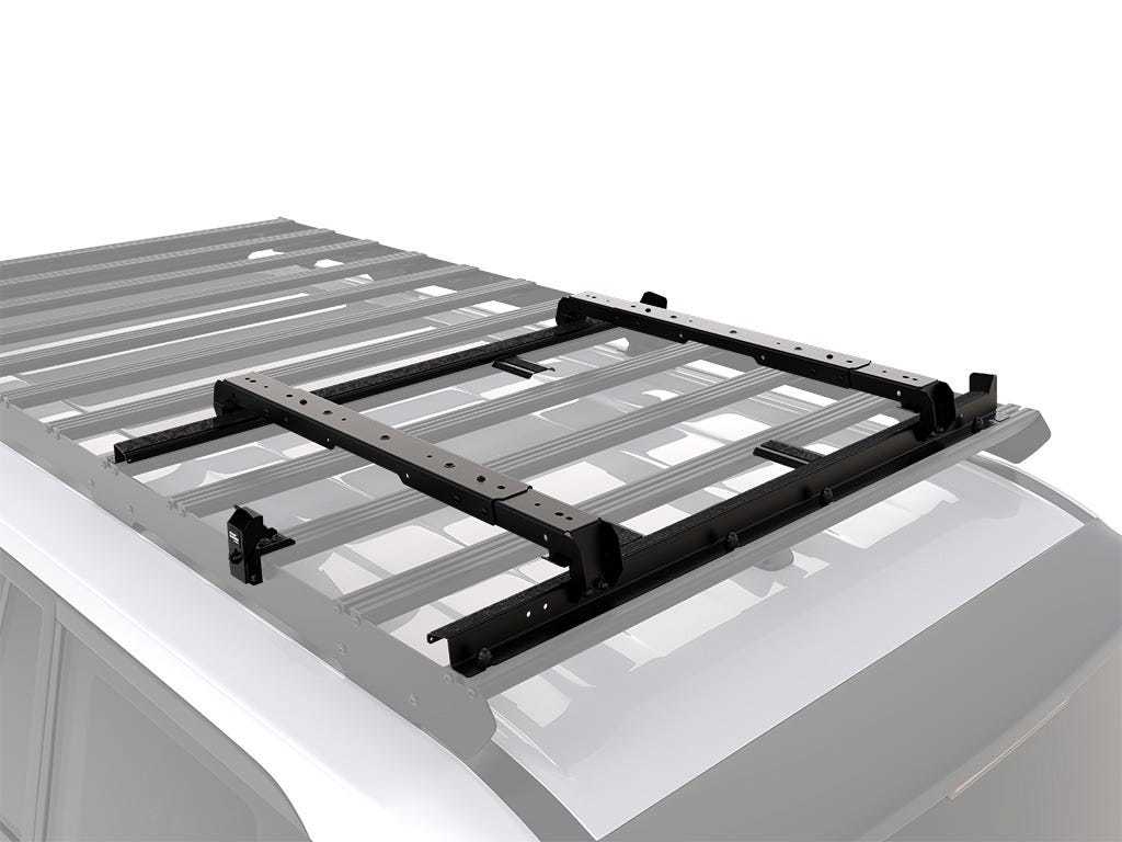 This bracket fits to the top of your Slimsport or Slimpro Roof Rack, in either N-S or E-W orientation. Safely store your TBRA019* or TBRA018* above your rack. This bracket can be used in combination with other accessories to gain back space above your mounted table. Use in combination with the RRAC360*. The RRAC360* adds two (2) SBOX031's* to the TBRA059. Use in combination with RRAC361*. RRAC361* secures 1 or 2 pairs of MAXTRAX MKII / Xtreme or 1 or 2 pairs of Tred Pro recovery boards. Use in combination with the RRAC149*. The RRAC149* is easily added with use of your TBRA015* or TBRA017*. Use in combination with the RRAC314*. The RRAC314* is easily added with use of your larger TBRA015*. These brackets are made of high strength steel and sealed in the same black powder-coating as the roof rack. The RRAC134* offers a keyless solution for added security and peace of mind. The TBRA059 can load two (2) x fully packed SBOX031's* Wolf Pack Pros or 1-2 pairs of recovery boards. Installation hardware is included. Note: *Additional accessories are sold separately.