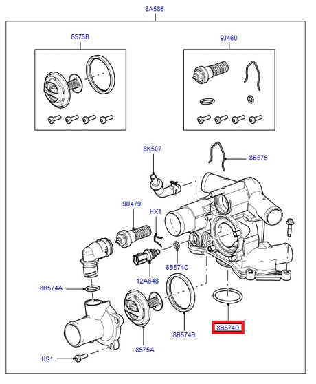 Thermostat and housing - fits - rr l322 - d4 - rrs 10> - 5.0l na