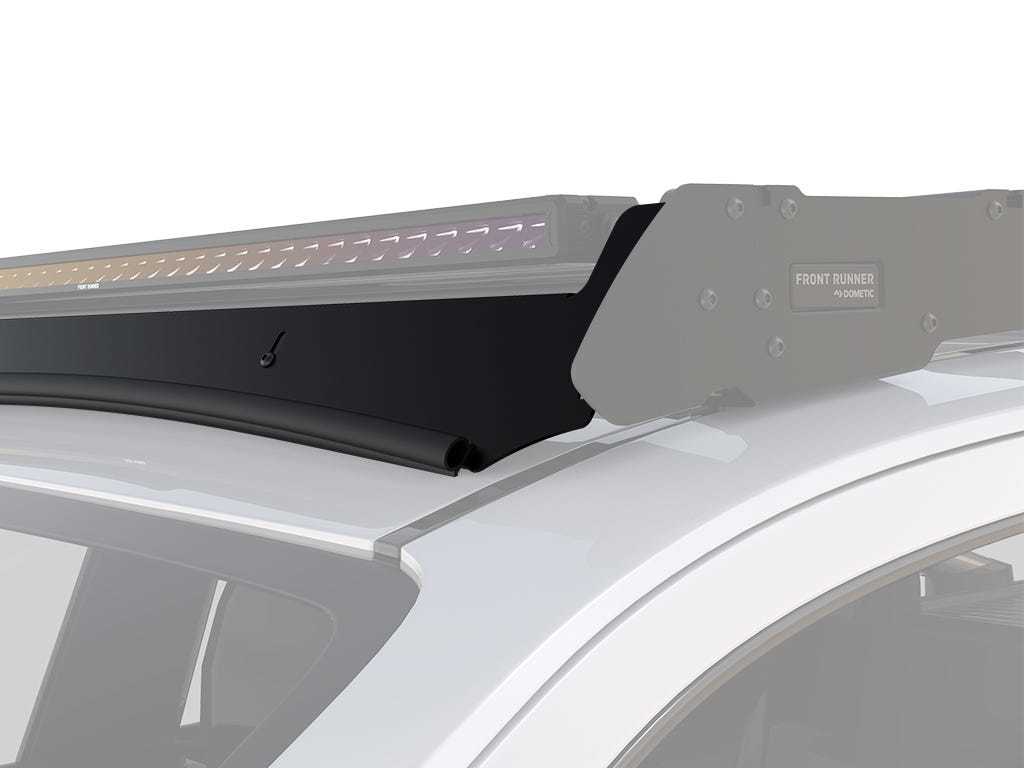 Lightbar wind fairing for KSTH007T. Allows fitment of LIGH213. Air flows easily over the rack and accessories, reducing drag and wind noise. Helps fuel consumption while carrying bulky loads. A durable rubber blade is fitted to the bottom edge of the Wind Fairing to help seal any gaps and act as a roof guard when traveling over rough terrain. Brackets and installation hardware included.