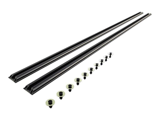The Front Runner Tracks have been designed to accommodate a stud plate which slides into the T-slot of the track and enables the foot assembly to be secured with nyloc nuts before the roof rack bolts on to the foot. Suitable for universal fitment of a roof rack should the vehicle roof allow. Often used for trailers and canopies to mount a rack or load bars. Each track is supplied with fitted double-sided tape and a section of pre-cut rubber, which is used to protect the vehicle roof from the track. Powder coated black. Comes in pairs.