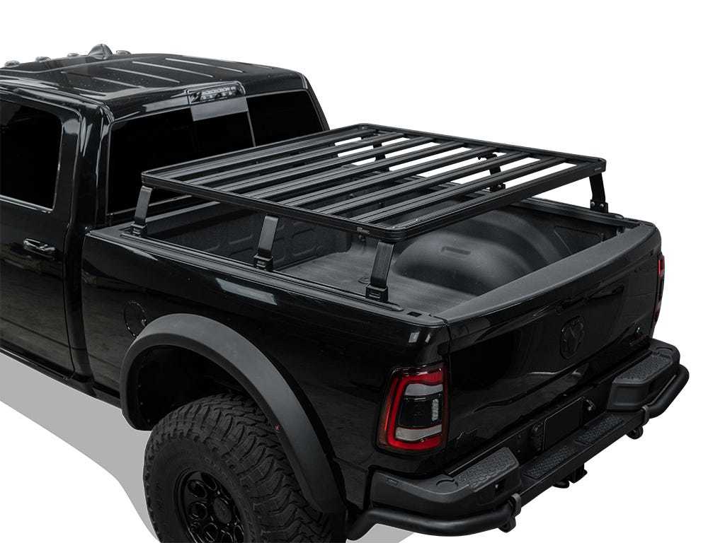 This kit creates a full-size rack that sits above your RAM 1500/2500/3500 6' 4'' truck bed. This Slimline II cargo carrying rack kit contains the Slimline II tray (1575mm x 1560mm), 2 Tracks that install on top of the side channel of the load bed, and 6 Pickup Truck Bed Universal Legs that fit into the Tracks. All Front Runner Rack Kits contain installation instructions as well as all the components needed to mount the Slimline II Tray to your vehicle. All Front Runner Racks are backed by a Limited Lifetime Warranty* Drilling may be required to mount the track to the bed of your truck. See the track and leg installation instructions in the INSTALL tab for further details.Note: If your Roll Top extrusion has a 6mm (0.24'') to 7mm (0.28'') slot opening, you may need RRAC962 for installation. * Note: A maximum driving speed of 130km/80mi per hour should be adhered to, when equipped with a Front Runner Roof Rack or Load Bar kit.