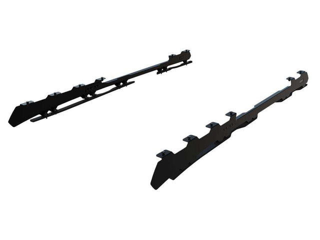 Comes in a set of (4) four rails: left/right side front foot rails and left/right side rear foot rails Installs onto the roof of the New Defender 90 when OEM tracks are removed Foot rails follow the contours of the vehicle's roof line providing a sturdy base to fit the Front Runner Slimline II Roof Rack. An opening on the Foot Rails allows access to Front Runner under rack mount tables (1 smaller prep or 1 larger camp size table). Made of steel and sealed with the same durable, weather-resistant powder coating as Front Runner Racks. Installation hardware and fitting instructions included. Note: The OEM tracks need to be removed when fitting these Foot Rails.